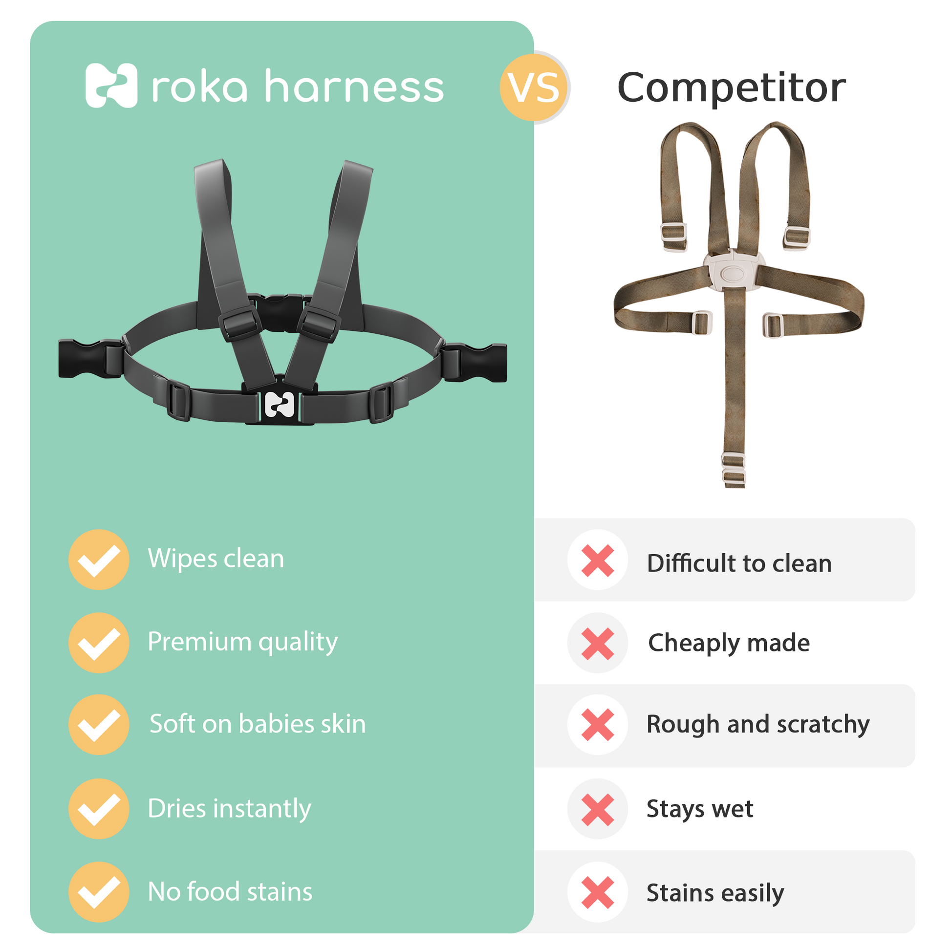 Introducing the ultimate solution for keeping your little one secure and comfortable during mealtimes – the Roka Harness.